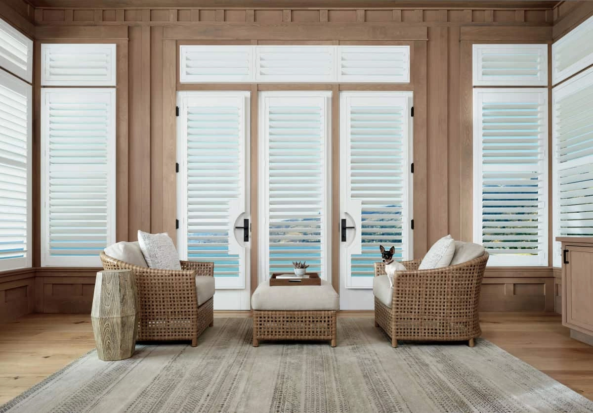 As for the color options, our catalog will not disappoint. If you want to update your living room or family area this year, don't overlook how your windows can add to the design, so feel free to speak with our specialists about your vision for your home this year. Once you have designed your ideal window fashions, think about how you could also pair your shutters with Design Studio™ Side Panels & Drapery for maximum impact. Whether you want to use them as standalone pieces or combine them with other Hunter Douglas offerings, these are certainly some of the best shutters for living rooms.